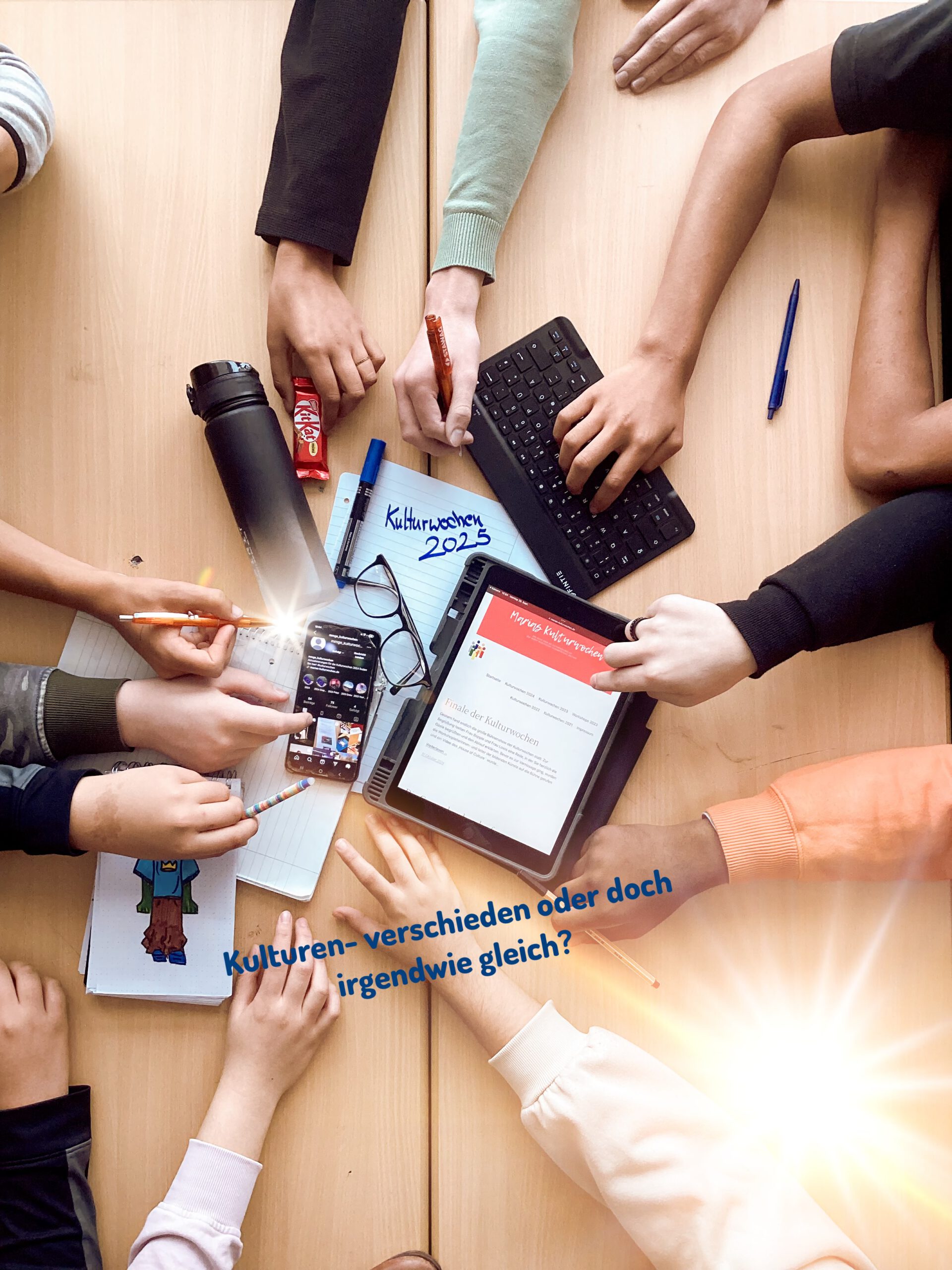 Am Montag sind die Kulturwochen des Jahrgang 9 gestartet. Das Thema dieses Jahres heißt „Kulturen verschieden oder doch irgendwie gleich.“ Um 9 Uhr haben sich alle im Forum getroffen. Die Leiter der Kurse wurden dann auch nochmal vorgestellt. So gegen 9:30 Uhr sind die einzelnen Kurse in ihren Unterrichtsraum gegangen.Wir sind aus dem Workshop „Werbung…