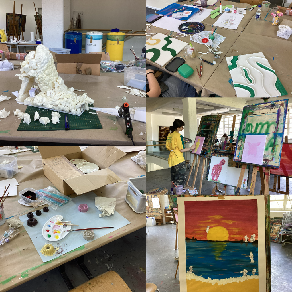 Im Rahmen eines Interviews hat uns die Workshopleiterin Sonja Lambert umfassende Einblicke in ihren Workshop „Mixed Media“gegeben. Die Schüler:innen stellen tolle Bilder mit den unterschiedlichsten Farben her. Sie betonte, wie wichtig es für ihren Workshop ist, dass die Teilnehmer:innen mit Motivation, Interesse und Ernsthaftigkeit dabei sind. Leider herrscht unter den Teilnehmer:innen nicht die gleiche Intensität…